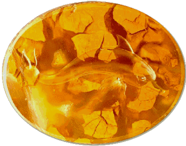 122. From the period of the Middle Bronze Age (the second millennium B.C.E.), the swift, intelligent dolphin was represented figuratively. Greek intaglio, mottled jasper scaraboid with streaks of chalcedony. Second half of the fifth century B.C.E. Boston, Museum of Fine Arts. |