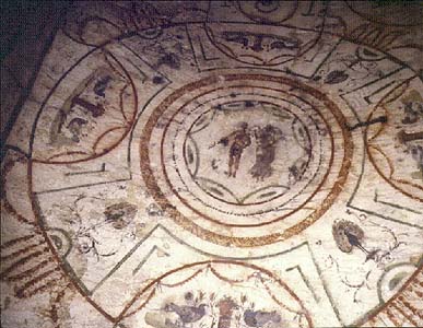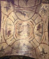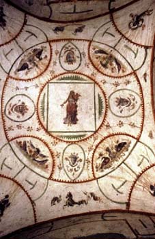| 149. A caring deity and a bountiful nature are rendered in impressionistic fashion in this vault painting. Cubiculum II, catacomb of Vigna Randanini. (left) |