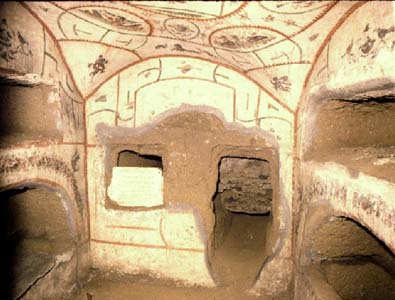 In cubiculum II of the Randanini catacomb, arcosolia, loculi, and kokhim represent various burial modes used in the catacombs.