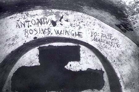 27. Vivid reminders of the Flemish Philippe de Winghe and the Maltese Antonio Bosio, explorers and chroniclers of the catacombs in the sixteenth and early seventeenth centuries, are recorded on the face of an arcosolium in the Christian catacomb of Priscilla.