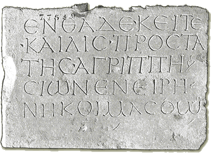"Here lies Caelius, Prostates of the Agrippesians." Caelius was probably the legal representative of the congregation of the Agrippesians. Museo Nazionale Romano.