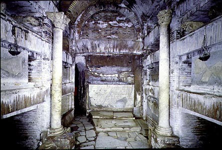 Crypt of the Popes, Restored 6. Popes and African bishops were interred in this chamber in the communal burial ground of S. Callisto, the first catacomb to be documented as Church property.