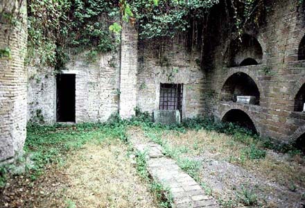 71. The second door on the far left side of the vestibule led to a small well room encircled by a bench, perhaps utilized for purification of the deceased and for repasts; the other doorway led into the catacomb proper, which also connects to the well room. Apparently the catacomb was used for underground burials by the Jews of Rome from the third to fourth century; regions above had served as pagan burial grounds. |