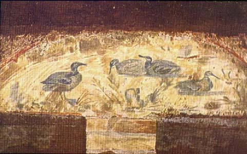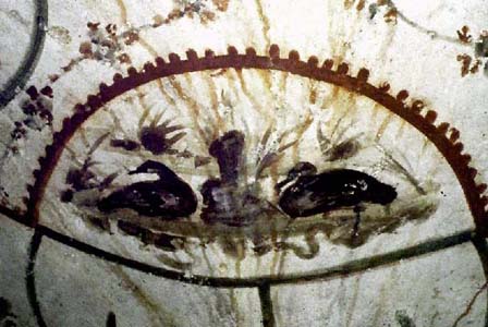85. Ducks appear in a similar habitat in a wall painting in the catacomb of SS. Marcellino e Pietro. |